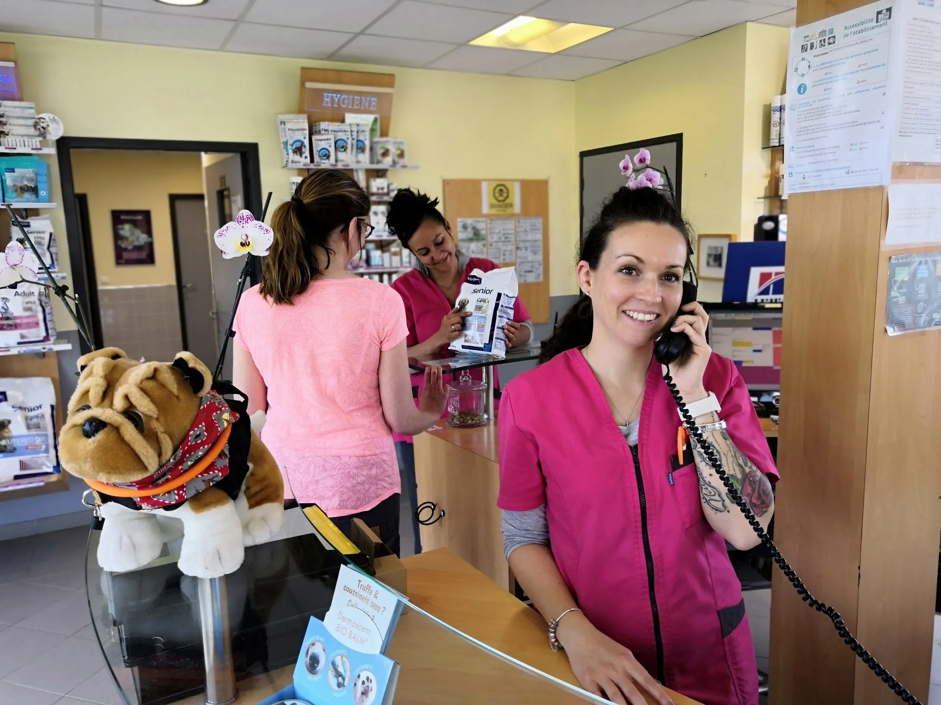 Vous y trouvez d'abordle sourire etl'écoute professionnelle d'une auxiliaire spécialisée vétérinaire (infirmière vétérinaire). Elle vous renseigne et vous accueille avec votre compagnon.